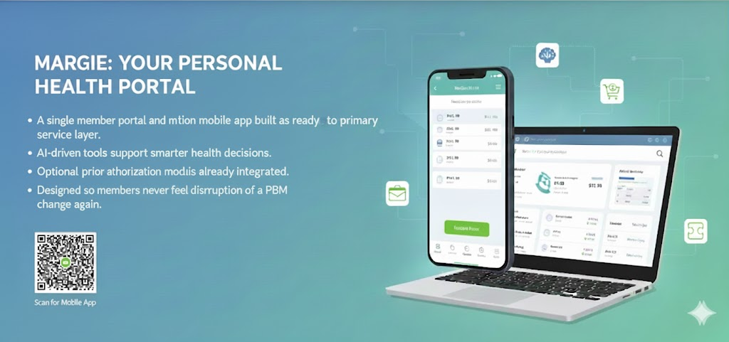 A single member portal and mobile app built as the primary service layer. AI-driven tools support smarter decisions, optional built-in prior authorization reduces friction, and Mark Cuban Cost Plus Drugs is already integrated. Designed so members never feel the disruption of a PBM change again.