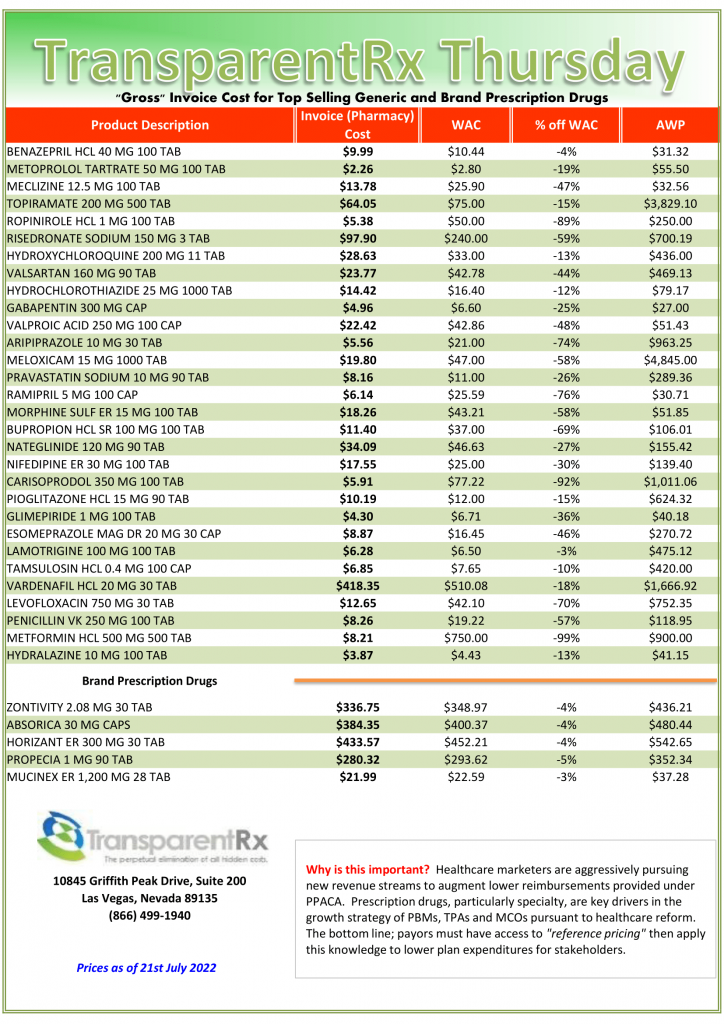 Reference Pricing: “Gross” Invoice Cost vs. AWP for Popular Generic and Brand Prescription Drugs (Volume 421)